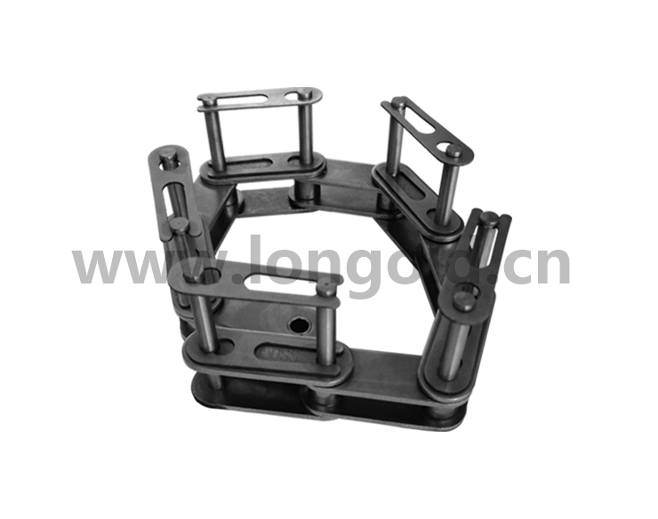 | 帶板條(附件型號:SLW) | 在雙倍節距鏈條上焊接板條的鏈條。適用于輸送較重的物品。 |